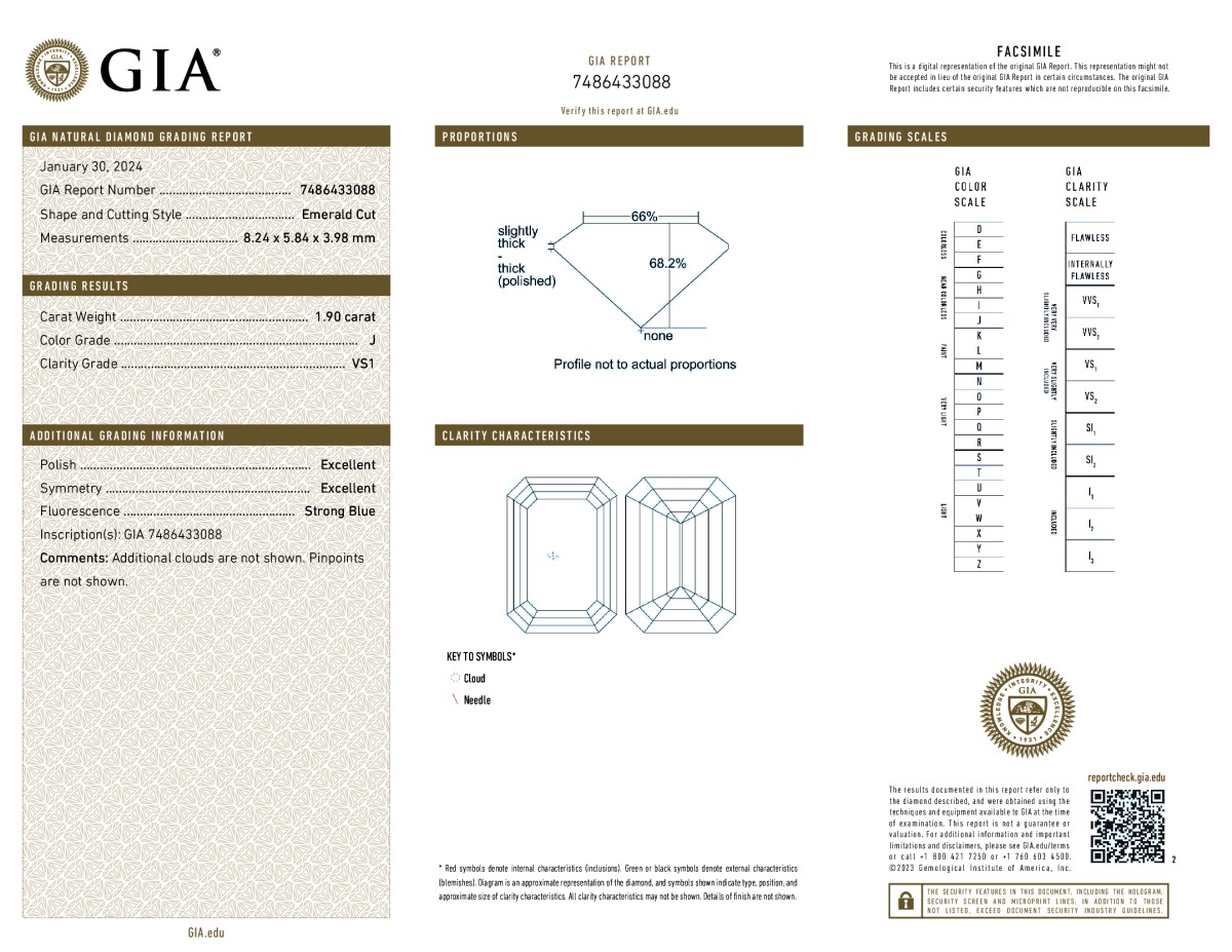 Emerald Shape, 1.90 Carat, J Color, VS1 Clarity