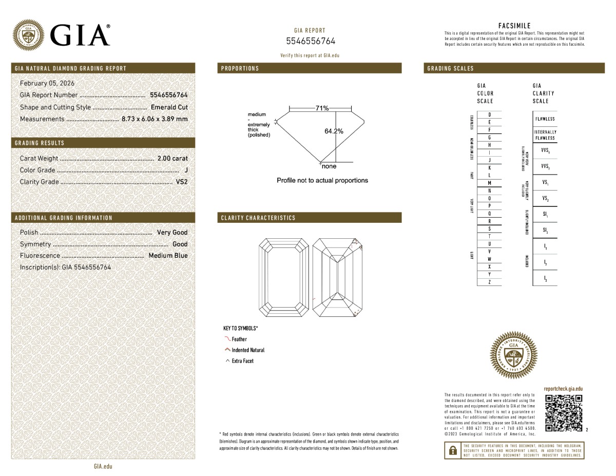Emerald Shape, 2.00 Carat, J Color, VS2 Clarity