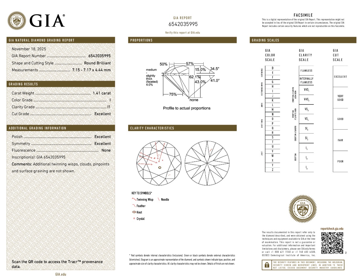 Round Shape, 1.21 Carat, H Color, SI2 Clarity