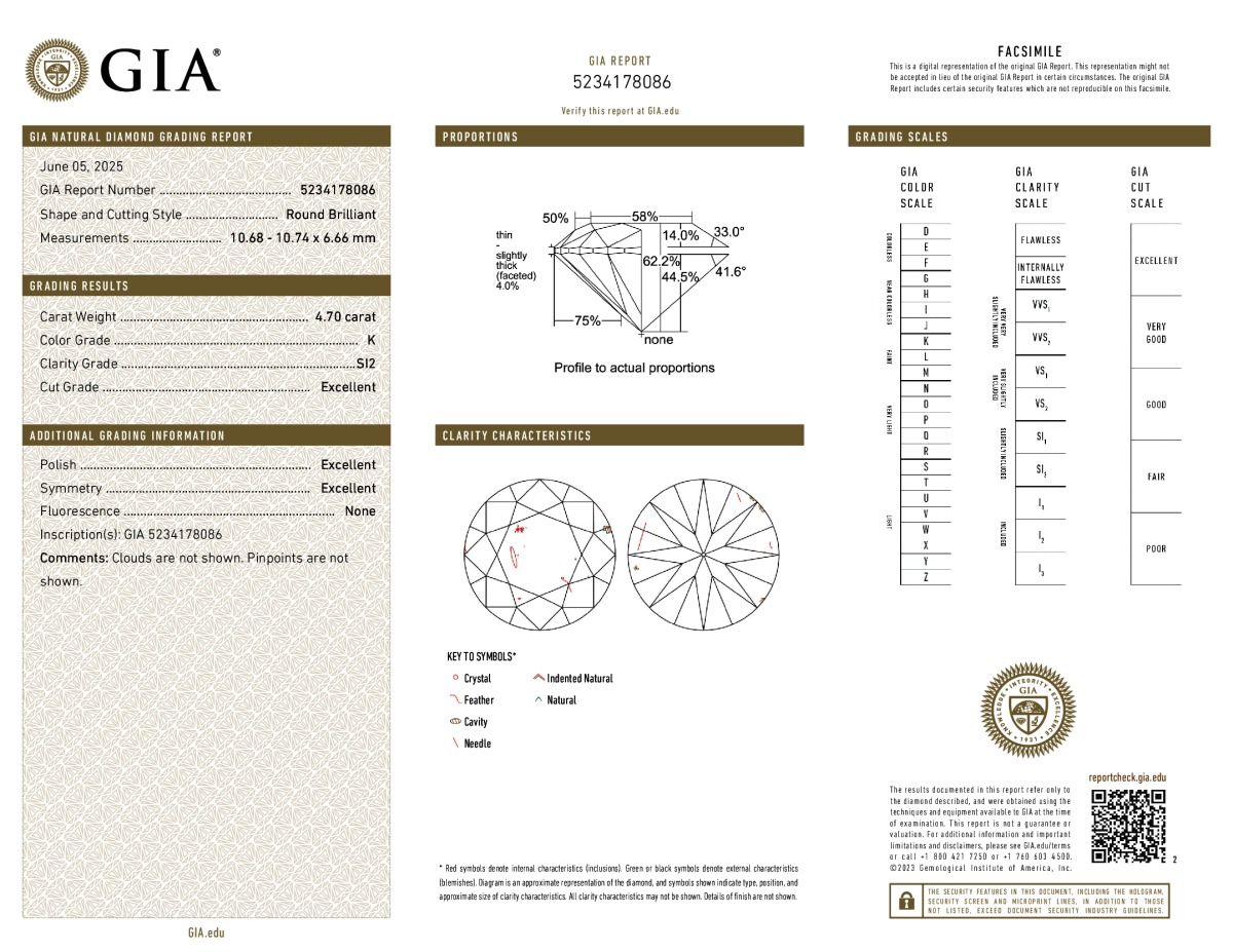Round Shape, 7.01 Carat, H Color, SI2 Clarity